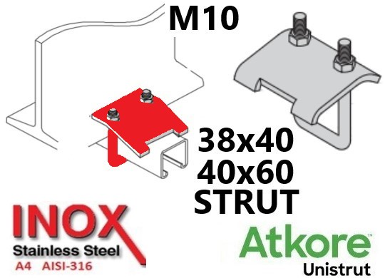 Unistrut profielklem T+I balk-rails 38x40,ST41x21-41..M10 A4